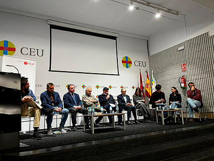 Desde la perspectiva de la producción también participó Andrés Garrigó, periodista, director y creador de Goya Producciones, que volvió a las ideas ya planteadas por otros ponentes como Paula Ortiz o Pablo Moreno: el tipo de cine del que se habla en esta jornada no va de cifras, sino de tocar corazones. Volviendo a las plataformas de streaming, Garrigó mencionó Famiplay, iniciativa de Goya Producciones que, en unión con otros socios y empresas, promueve proyectos cinematográficos enmarcados dentro del cine católico y de valores, poco presente en las plataformas mainstream. Haciendo referencia a las palabras de Ortiz, planteó que no nos encontramos únicamente en una batalla cultural, sino religiosa, entre aquellos que niegan a Dios y los que lo abrazan, que, desgraciadamente, no son tantos como deberían.