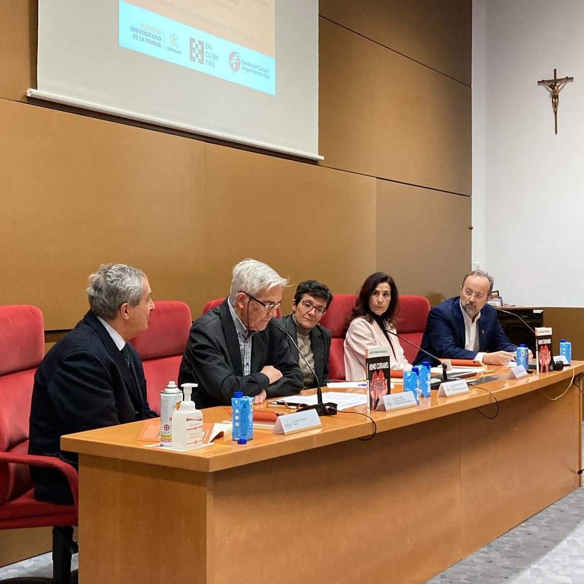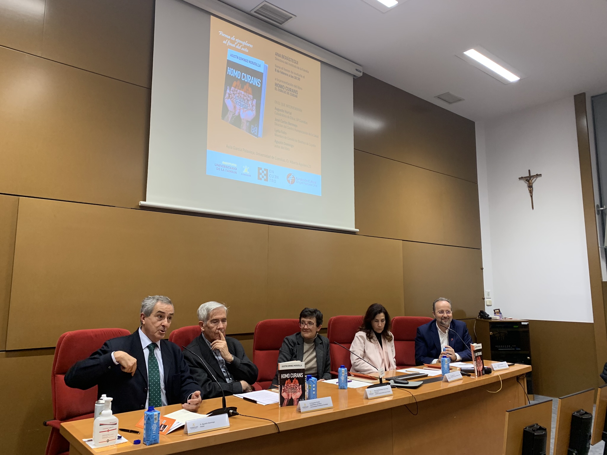 Sociedad. La Universidad Pontificia de Comillas, a través de su Instituto Universitario de la Familia, acoge la presentación de “Homo Curans. El coraje de cuidar”, autoría del secretario de la ACdP en Valencia y catedrático de Filosofía Moral y Política Agustín Domingo Moratalla, que estuvo acompañado de Augusto Hortal, catedrático de Ética en UP Comillas, José Carlos Bermejo, del Centro Humanización de la Salud, y Lydia Feito, miembro del Comité de Bioética de España.