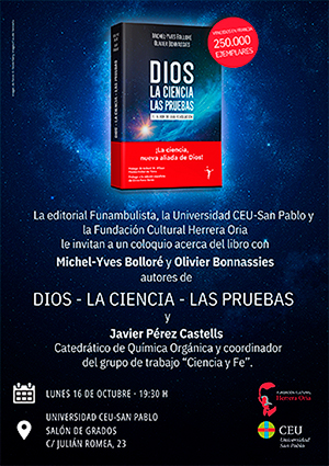 Michel-Yves Bolloré y Olivier Bonnassies, ambos ingenieros franceses, presentan en Madrid su ensayo “Dios, la Ciencia, las Pruebas”, cuya versión francesa fue prologada por el Premio Nobel de Física Robert W. Wilson, y por María Elvira Roca Barea en nuestro país. Acompañados por el Catedrático de Química Orgánica Javier Pérez Castells, y presentados por Fernando Lostao, director de la Fundación Cultural Ángel Herrera Oria, los autores nos hablaron de los indicios científicos de la existencia de Dios o, al menos, de una conciencia creadora inteligente, algunos de los cuales son la explicación más sencilla a la teoría llamada “Ajuste fino del Universo”, o la finitud de este, pues si tiene un final previsible, también debió tener un principio, lo que implica que fue creado, ya que, en palabras de Parménides <<de la nada, nada surge>>. Una de las conclusiones a las que Olivier confiesa que ha llegado es que un poco de ciencia aleja de Dios, pero un conocimiento profundo acerca al mismo, algo que compartió Pérez Castells, director del seminario permanente Ciencia y Fe y miembro del capítulo español de científicos católicos. Los autores también hablaron de la diferencia entre no-creyentes y ateos, pues según su experiencia y conocimientos, han llegado a la conclusión de que ser ateo conlleva más Fe, exige creer firmemente en más cosas, que ser creyente. La obra recoge las relaciones entre ciencia y Dios desde Copérnico hasta hoy, pasando por el materialismo y la relación ciencia-ateísmo del siglo XIX al acercamiento ciencia-fe a raíz de los descubrimientos del siglo XX. El diario El Debate retransmitió el evento en directo y los compañeros tuvieron la oportunidad de entrevistar a los autores, que ya han vendido más de 250.000 ejemplares en Francia.