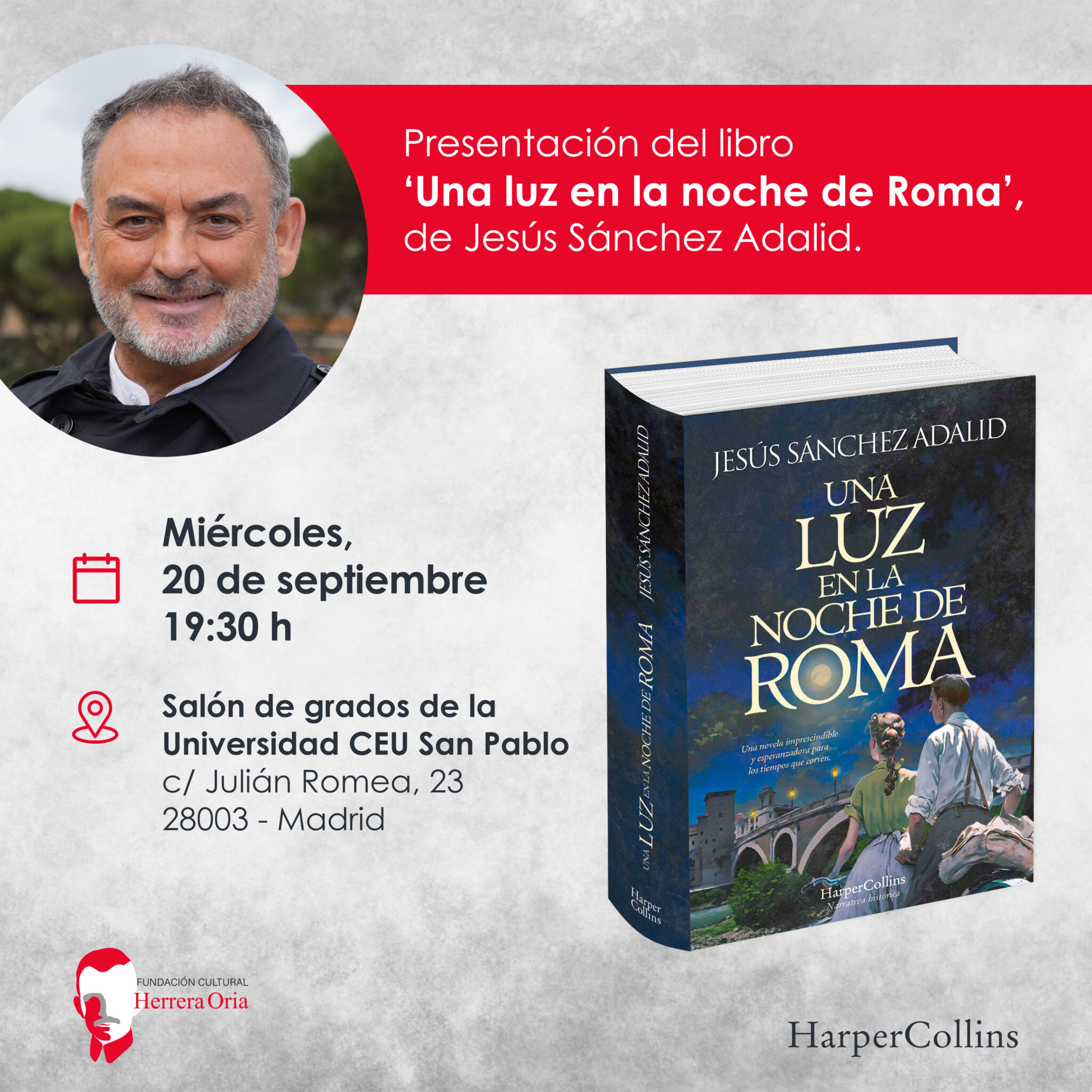 El sacerdote y escritor Jesús Sánchez Adalid nos presenta su última obra, una novela histórica que se basa en la historia del “Síndrome K”, una enfermedad inventada por dos médicos italianos con la finalidad de salvar judíos en la Italia ocupada durante la Segunda Guerra Mundial; gracias al “Síndrome K”, supuesta dolencia altamente contagiosa y peligrosa, cientos de judíos pudieron ser refugiados y protegidos en un hospital de la Isla Tiberina. El escritor nos cuenta su labor de investigación y aquello que le motivó a escribir, como accedió a la información en la que se basa su novela, los documentos y archivos consultados (el Yad Vashem, la Fundación Spielberg y el Archivo Histórico de la Shoá), las entrevistas realizadas a los familiares de los protagonistas reales, etc.