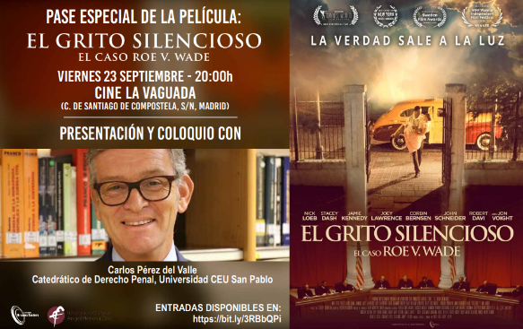 Tras la proyección de la película, que trata sobre el origen y los pormenores del proceso jurídico que concluyó con el resultado favorable para la demandante, conocida durante el caso como Jane Roe, y por tanto otorgaba a la mujer embarazada el poder de decisión sobre la vida del bebé. En 2022, la sentencia fue anulada, dictaminándose que la Constitución de los Estados Unidos no otorga el derecho al aborto, y permitiendo que cada Estado legisle sobre la cuestión. Se trata de una película que nos abre los ojos sobre la realidad del aborto, introduciéndonos en el mundo de las clínicas abortivas y, concretamente, en el caso del Doctor Nathanson, que pasó de realizar miles de abortos a ser uno firme defensor de la vida y detractor de la práctica. Nos expone también en profundidad la figura de la demandante, Jane Roe, que fue engañada por sus abogadas, así como las mentiras y datos tergiversados que se publicaron para ganar el favor de la opinión pública. Carlos Pérez del Valle, Catedrático de Derecho Penal, dirige el coloquio sobre la película.